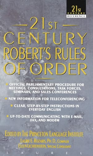 21st century Robert’s rules of order / edited by the Princeton Language Institute ; Laurie E. Rozakis, compiler ; Ellen Lichtenstein, special consultant.